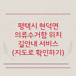 평택시 현덕면 주변 의류수거함 위치에 대해서 말씀드렸습니다. 의류수거함을 제대로 이해하고 활용하면 환경을 보호하면서도 자원을 재활용하는 데 기여할 수 있습니다.