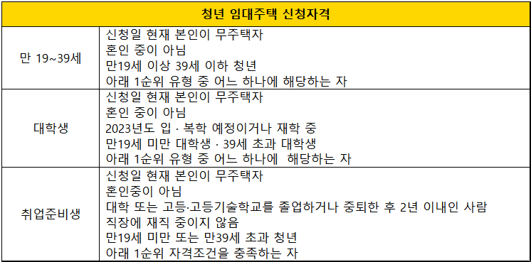 청년 임대주택 신청자격